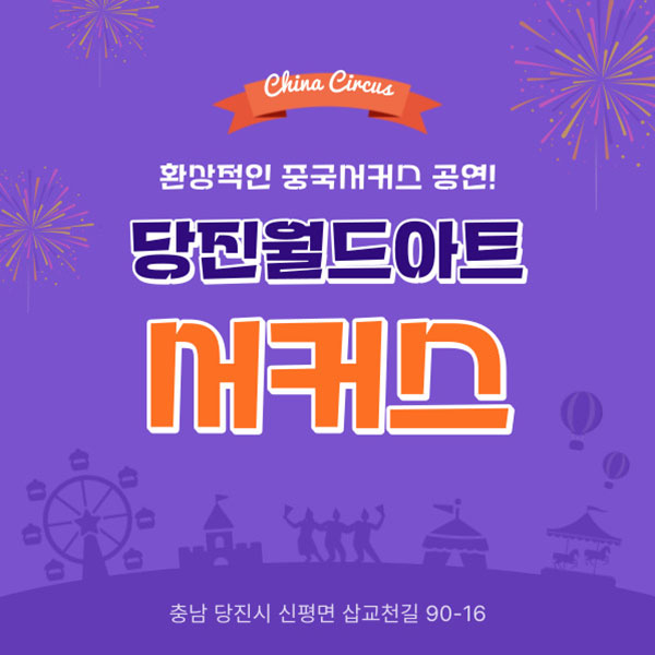 당진 삽교호 근처에 자리한 당진월드아트서커스는 세계적인 수준의 서커스 공연을 통해 즐거운 시간을 선사하는 중국 서커스 전문 공연단으로서 링체조, 실패돌리기, 무용, 공중곡예, 모자돌리기, 이인체조, 기계체조묘기 등 화려한 조명과 함께 펼쳐지는 스릴 넘치고 신기한 공연 프로그램이 준비되어 있습니다. 또한 국내의 유일무한 중국 서커스의 환상적인 퍼포먼스를 경험해 보실 수 있도록 30년 경력을 자랑하는 각 분야별 공연 전문들의 아슬아슬하면서도 놀라움이 가득한 쇼를 선보여 드리고 있습니다. 아이부터 어른까지 모두에게 재미와 감동의 잊지 못할 추억을 안겨주는 당진월드아트서커스에 언제든 놀러오셔서 행복한 웃음이 끊이지 않는 최고의 공연 보시면서 소중한 시간을 가져보시길 적극 추천드립니다.